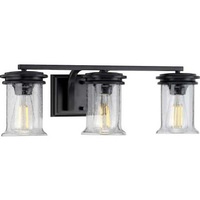 MATTE BLACK THREE-LIGHT BATH CLEAR SEEDED GLASS SHADES (P300274-031) |