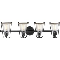 FOUR-LIGHT FARMHOUSE MATTE BLACK BATH VANITY LIGHT (P300298-031) |