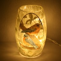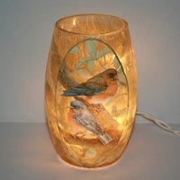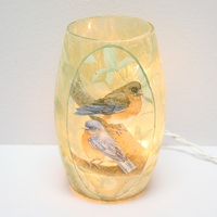 5.25" x 3.25" - Bluebirds - Lighted Glass Vase - 10 Light Miniature String Inside