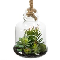 10" Green Asst Succulents in Glass Jar (FH182501) |
